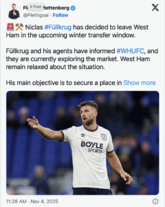 Fullkrug’s agent has confirmed the transfer hasn’t worked and that he wants a return to the Bundesliga to try and rekindle his form ahead of the World Cup squad announcement. According to Sky’s Florian Plettenberg, ‘West Ham remain relaxed’ about Fullkrug leaving.