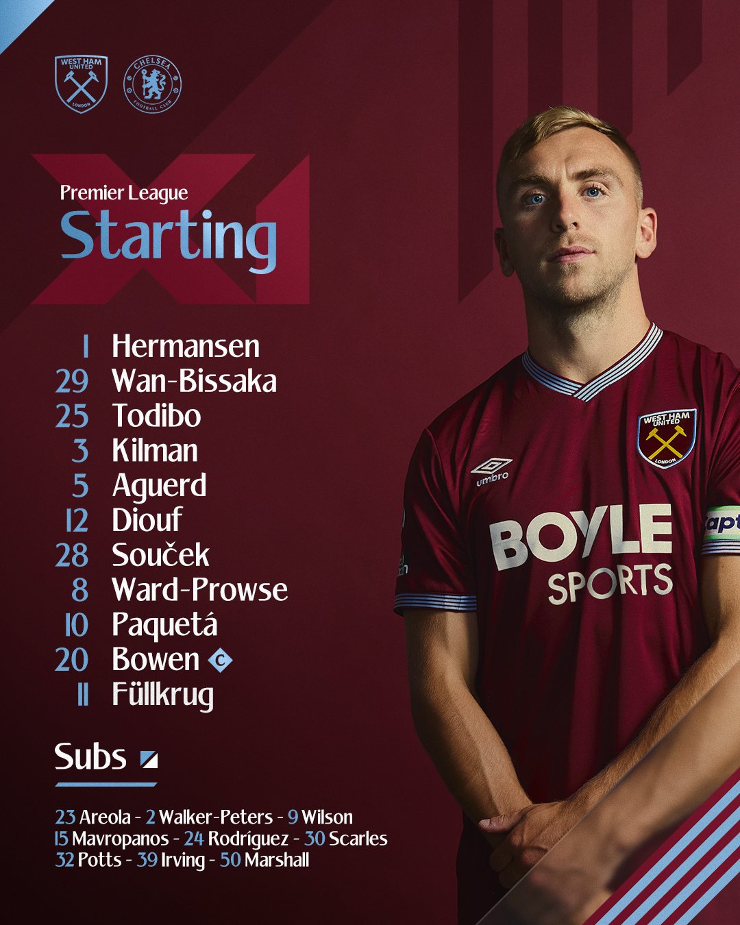 At this stage of the season and for our team development I would also play Jarrod Bowen on the right wing varying at inside right when demanded.